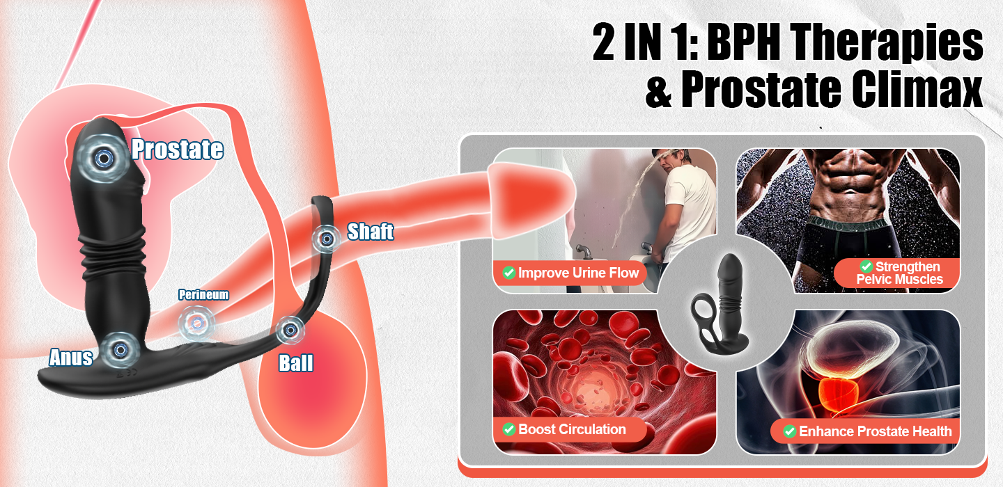 - 12 thrusting 3 vibrations precise stimulation to enjoy prostate orgasm and BPH therapy.
