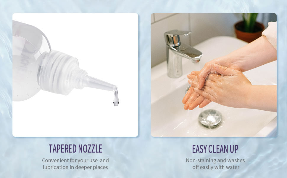 - Hypoallergenic and safe water-based lube, toy-friendly, and condom compatible while still can be used on the body.