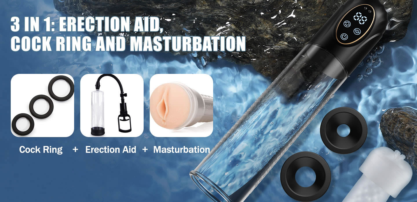 Buddy, are you still troubled by ED? Our 3-in-1 waterproof penis pump is designed for erection aid, bigger, and masturbation. 6 levels of vacuum suction and 3 pressure modes, promote the expansion of penile vascular tissues and increase blood flow, leading to penis erection longer, stronger and bigger.