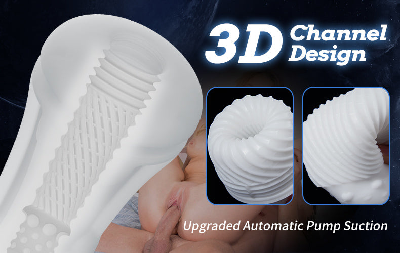 Internal multi-layer spiral folds and raised particles 3D vagina design, 3 vibrations and 3 automatic sucking modes, let your penis enjoy different frequencies of squeezing, sucking and wrapping during insertion, giving you progressive friction and stimulation pleasure.
